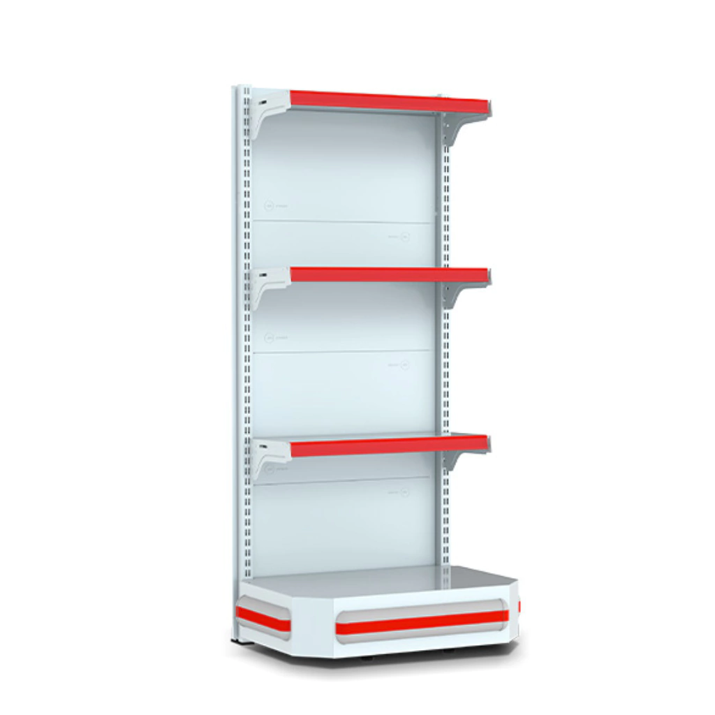 Ao final, fixe discretamente um L-bracket no piso apenas se altura superar 2 000 mm ou se a loja usar paleteira para reposição pesada; caso contrário, a própria integração com o corpo linear fornece estabilidade suficiente.